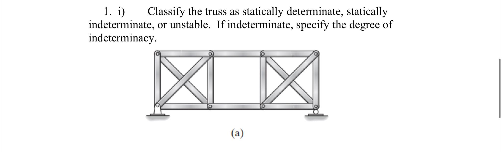 Statically indeterminate trusses differ from statically determinate trusses in several ways besides complexity of analysis by hand calculations. Truss analysis (fe exam review) / in this video, i determine if a truss is unstable, determinate or indeterminate. In this post, i'll explain what those terms mean, and how to tell the difference between how can you tell the difference between determinate and indeterminate tomatoes? Geometric stability & static determinacy and indeterminacy of trusses, beams and frames. This truss is indeterminate to the first degree.